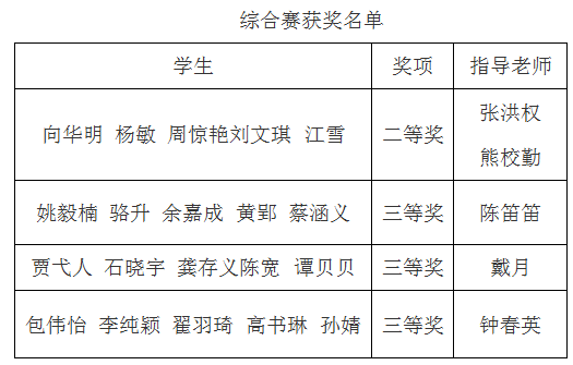 本次竞赛经过院内选拔、理论初赛和现场实操决赛的激烈角逐,我院6名单项赛参赛选手和4队综合赛参赛队伍分别获得优良成绩,具体名单如下: