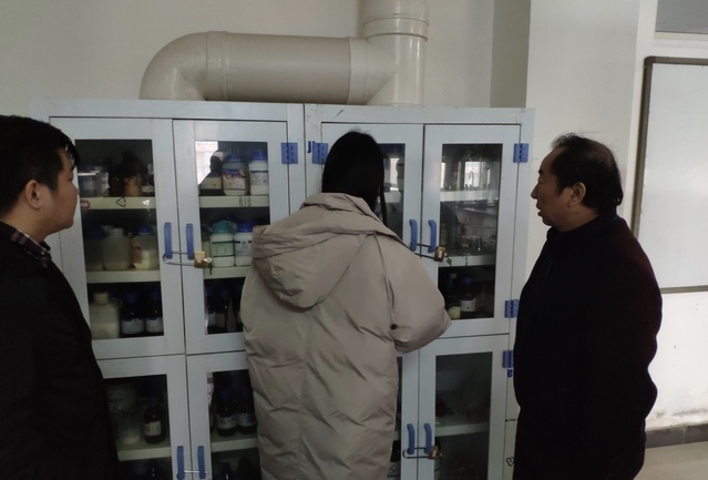 为规范和加强学院实验室安全管理工作,排除安全隐患,防止不安全事故发生。1228日上午,化生学院院长曾国平、书记严莉萍、副院长肖长清、助理周诗毅等领导班子成员对实验室及仓库进行安全检查工作。