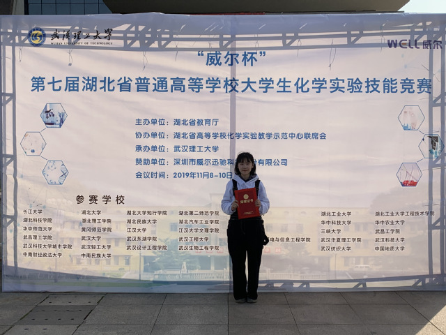 由湖北省教育厅主办、武汉理工大学承办的第七届大学生化学实验技能竞赛于2019年11月8~10日举行,旨在提高我省本科生的实践能力和科学素质,推进化学实验教学改革。