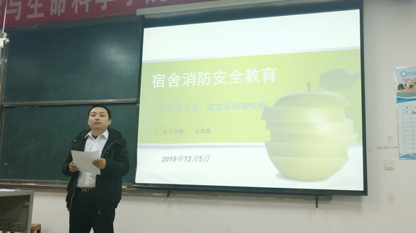 本网讯(通讯员何玉茹)2019年12月5日下午六点半,英国威廉集团于实验楼s6202举办宿舍消防安全培训会。18级19级寝室长参加本次会议。本次培训会由化生院学工办主任宦忠虎主讲。