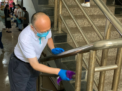下午,副校长黄颂带领化生学院50余名教职员工一起参加了 “校园是我家 洁净靠大家”爱国卫生周活动。为争做校园环境保护的宣传员和践行者,大家备齐清扫工具,全副武装,冒雨来到了学院包干区,对西区1-9栋宿舍的楼道、护栏和寝室内部进行打扫,对宿舍和西区食堂外的道路进行打扫、清理垃圾杂物等,为2020届毕业生返校创造了一个安全、洁净、文明的校园环境。