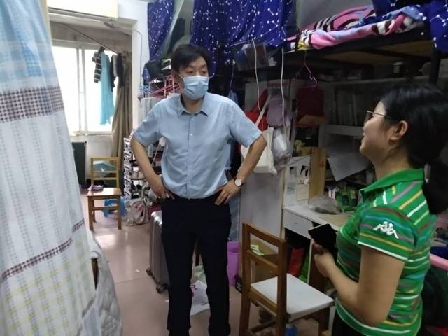 热闹的办公室一直到下午四点半才安静下来。一天时间,共计完成了31名同学毕业材料发放,并且顺利离校,有3名同学因为从外省赶过来,晚上需要在学校住一晚。晚上五点半,分党委副书记李立、学工办主任宦忠虎深入宿舍,看望了留宿的三名女同学,了解她们的行程安排,叮嘱她们一个人住宿舍要注意安全,有困难及时联系学院老师。