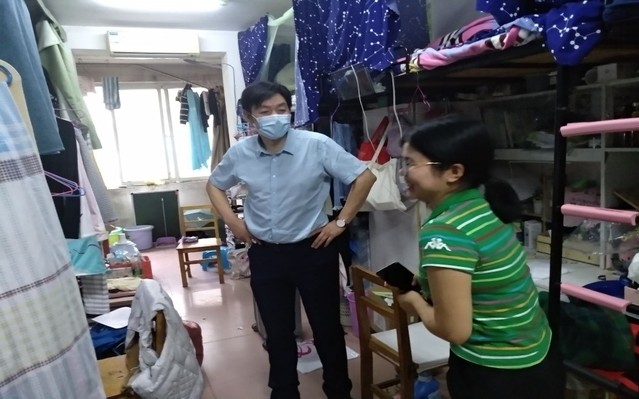 (学院党委副书记李立前往西区学生宿舍了解学生情况,查看寝室