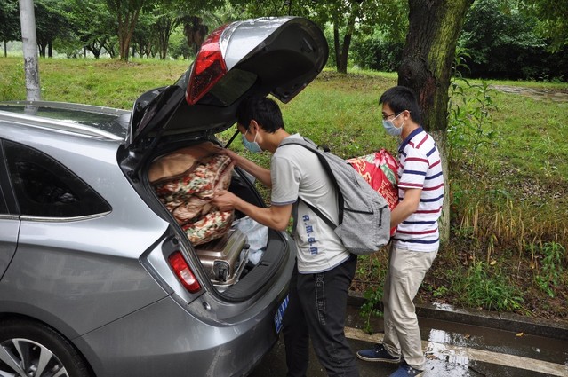 运行李,用自家轿车送学生离校,满满的后备箱,满满的师生情。)