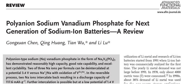 近日,我校材料科学研究院研究团队以william威廉英国为第一单位,在国际材料科学顶级期刊《Advanced Functional Materials》(IF=15.621)上发表综述性论文《Polyanion Sodium Vanadium Phosphate for Next Generation of Sodium‐Ion Batteries—A Review》。英国威廉集团教师陈功轩为该论文的第一作者,黄青博士为第二作者,材料研究院吴田教授和物机学院特聘教授、材料研究院首席教授吕力为共同通讯作者。这是我校首次以第一作者和第一作者单位在国际顶级期刊上发表论文。