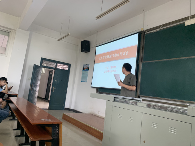 本网讯(通讯员郑婕)为了加强在校学生的管理,将考勤工作落实到位,特此召开化生学院班级考勤员培训会,从管理制度,考勤要求,送报要求,汇总表要求几个方面来进行培训宣讲。培训会由学生会办公室余嗣丽主持。学工班主任宦忠虎参加了培训会。