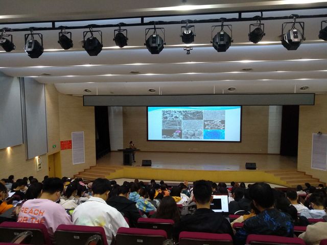 “隐形飞机大家知道它为何能隐形吗”“大家知道漫威宇宙里的钢铁侠铠甲也是用纳米材料制作的吗?”现场,朱玉涵博士巧用生活事例引发在场同学的热烈反应。她从20世纪纳米材料的诞生出发,延伸到现代对纳米材料的广泛应用,并结合环境保护,列举出纳米材料在大气污染、污水处理、环保等应用方面的巨大价值。