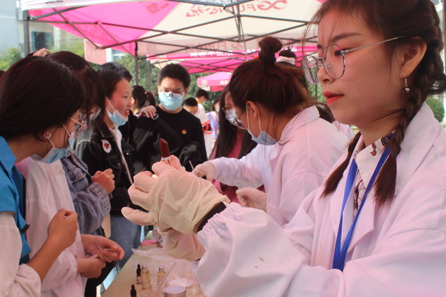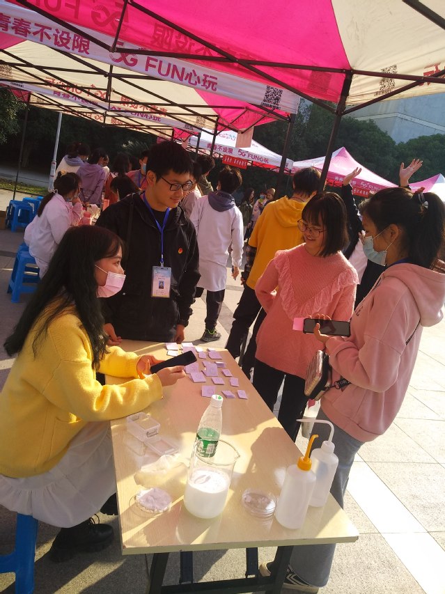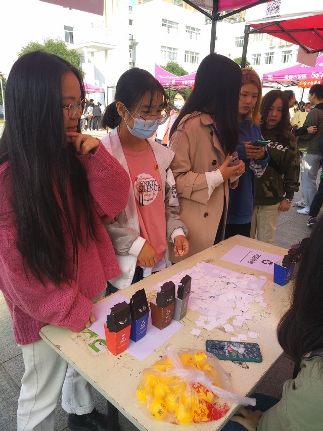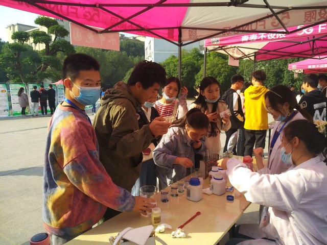 化学很枯燥?乏味?晦涩难懂?不不不,本次展览打破了以往的固有形式,以玩游戏赢取奖品的方式让全校师生一起走进生活中的化学。“垃圾分类小游戏”、“看图识植物”、“生活中的小妙招”、投球、你问我答等有趣的互动实验,让同学们在赢得奖品的同时还收获了新知识。其中,“DIY口红制作”更是凭借实力吸引了一大波女生,不少女生都惊叹,“原来自己也可以制作自己喜欢的口红”。“水中花园”通过有趣的化学实验现象,为我们呈现出了一场独特的视觉盛宴。想要喝到自己自制的酸奶吗?“姜撞奶,酸奶的制作”满足了同学们的这一愿望。“社团成果展”自然也不甘落后,展现了各种叶脉书签和植物图画。