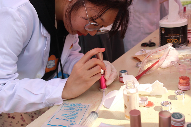 同学们体验DIY口红制作