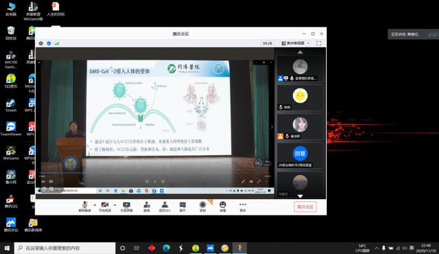 (通讯员:邬雨彤)2020年11月10日晚上,20级生物科学2班在线上举行了一次新冠肺炎防控教育视频学习活动。全体同学于宿舍通过腾讯会议线上观看新冠肺炎防控教育视频,由班长秦珊珊负责组织讲解视频。本次讲解,班长秦珊珊介绍了新冠病毒的成分结构,阐述了新冠病毒如何侵染人体以及新冠病毒对人体的危害,最后讲解了如何防止感染新冠病毒。同学们听完讲解后在线上积极发言,就防止疫情蔓延这一话题提出了许多宝贵的意见。最后这场活动由生活委员黄继红同学做总结进行完美收官。