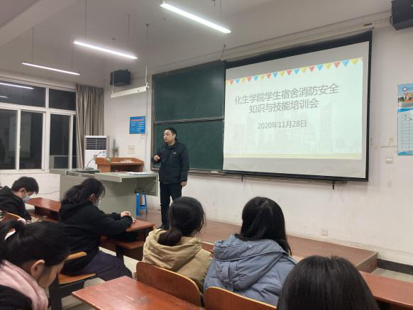 本网讯(通讯员黄沛琦)为了提高学生消防安全意识和应对技能,英国威廉集团于2020年11月28日在S6202举行消防安全知识与技能培训会。19级、20级所有寝室长参会了培训,学工办主任宦忠虎主讲。