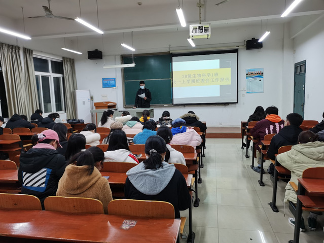 (通讯员杨莉)光阴荏苒,日月如梭。转眼间本学期已接近尾声,为了更好地让全班同学了解班委成员的工作情况,20级生物科学一班于12月10日18时30分在化生院S6202教室举行班委工作总结报告会。会议由班长主持,全体班级成员及辅导员共同参加。这是本学期首次班委会工作报告会,从最初对工作生疏到现在有所收获,各班委在工作中都取得了很大的进步与成长。