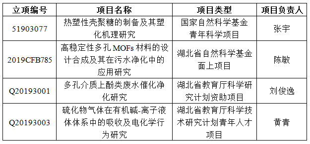 2019年度纵向课题一览表