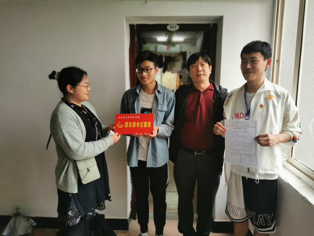 老师们走访了学院各班级团支部书记宿舍,逐一授予“团支部书记寝室”标识牌,为同学们分发张贴文明宿舍建设公约、文明创建宣传画报等。资产管理处老师联合辅导员重点检查指导了宿舍内务整理情况,和同学们亲切交流,号召班级团支书们要时刻铭记身份,将优秀学生的文明涵养体现在学习和生活细节中,要求大家进一步树牢共青团员意识、文明意识,充分发挥先锋模范作用,带动全院学生投入宿舍文明创建活动,打造健康向上、环境美洁的学习生活场所。