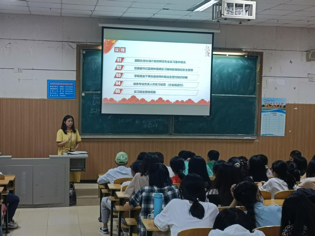 2021年9月28-29日,化生学院在校阶梯教室1-2分批次举行了2022届本科毕业生就业实习动员大会。会议由学院副院长肖长清主持,学院分党委副书记雷晓林、各系主任、专业负责人、毕业班辅导员、实习指导老师以及全体毕业生共250余人参加了会议。