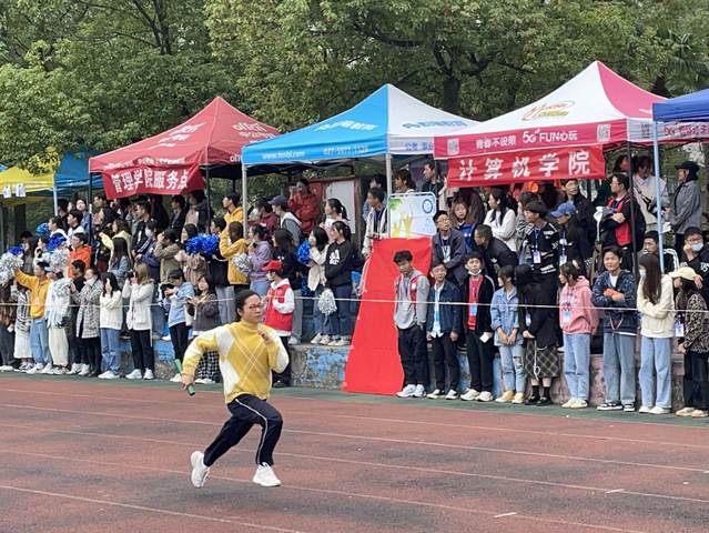 上午11点,随着发令员一声枪响,接力赛正式开始。赛场上,本院运动员步伐矫健,奋力奔跑,表现出十足的拼搏精神。赛场外,啦啦队情绪高涨,热情似火,用摄像机记录着角逐的激烈时刻。最终在全体人员的努力下,本院成功反超,并迅速与第二名拉开较大差距,勇夺第一。比赛后,全体人员在主席台前拍照留念,师生20*50m混合迎面接力赛正式落下帷幕。