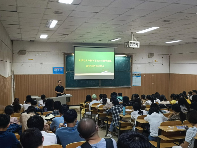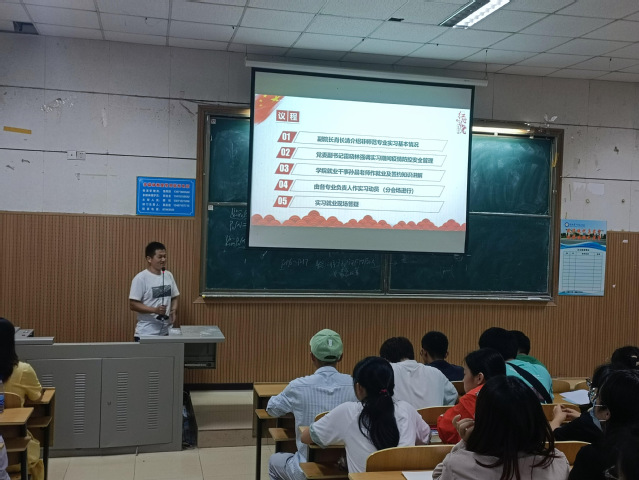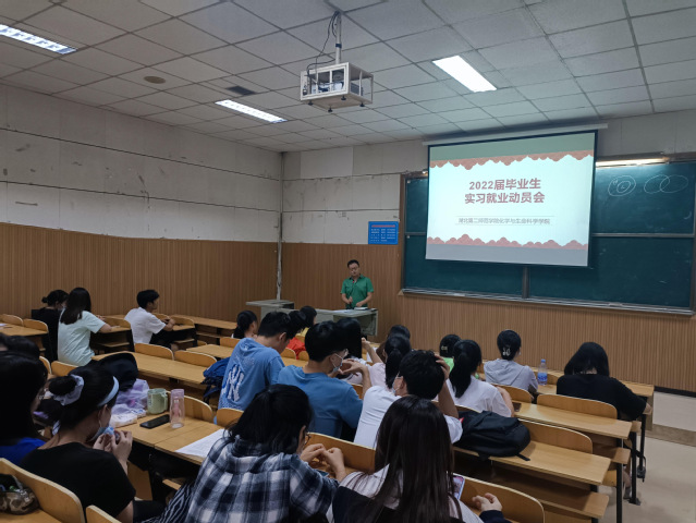 2021年9月28-29日,化生学院在校阶梯教室1-2分批次举行了2022届本科毕业生就业实习动员大会。会议由学院副院长肖长清主持,学院分党委副书记雷晓林、各系主任、专业负责人、毕业班辅导员、实习指导老师以及全体毕业生共250余人参加了会议。