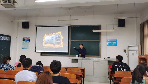 随后,宦老师又引导同学们学习了《消防法》有关知识。要求同学们认真学习,明确安全责任,培养消防安全防范意识。结合高校常见火灾事故案例,归纳寝室里一些容易引发火灾的情形,介绍了正确预防和应对火灾事故途径和方法。在高校宿舍,许多的事故都是由于同学们违章用火用电造成。少数大学生思想上忽视学校的防火安全制度,造成了火灾事故,危害了公共安全,个人也受到了学校严厉的纪律处分。同学们一定要提高警惕,遵章守纪,在宿舍正确使用电器,严禁使用明火,做到人走断电,坚决杜绝一切可能出现的隐患。