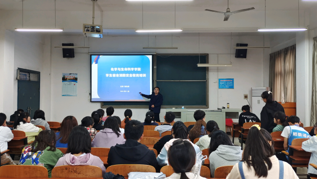 本网讯(通讯员:薛骏)为了提高学生消防安全意识和应对技能,化学与生命科学学院于2021年11月05日开展了寝室长消防安全教育培训会。2021级所有寝室长参会了培训,学工办主任宦忠虎主讲。
