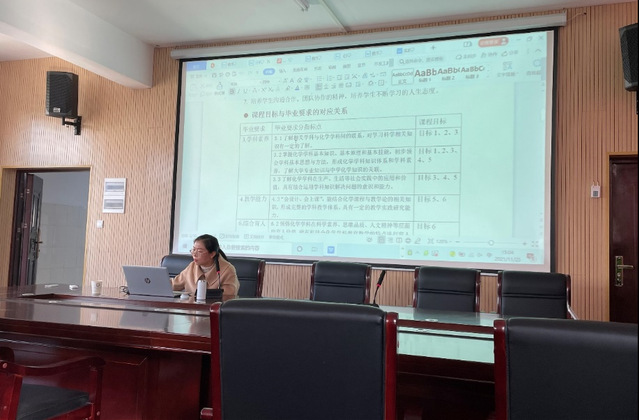 会议伊始,邓樱花副处长为全体教师介绍了在新课程体系下,如何按照人才培养方案编写课程大纲。邓处长以《分析化学》为例,详细解读了新大纲的结构,与人才培养方案的对应关系,特别是在如何填写课程思政目标和专业课程目标等方面做了详细的介绍。在听完介绍后,老师们积极反馈了自己在编写大纲过程中遇到的问题,邓处长也一一解答,并与老师们热烈讨论。通过学习,全体老师对新大纲的编写有了更好的掌握。