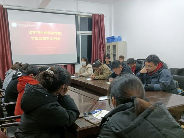 本次会议由主席团秦佳阳和分团委秦珊珊主持,分团委副书记张灏带领各部门部长以及学生会全体成员共同学习。