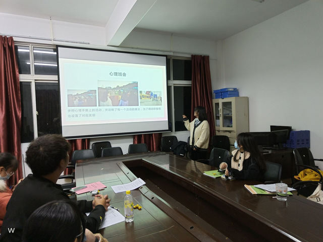 针对大家的表现,宦老师也给了一些建议:PPT课件作为讲课的辅助内容,需要对讲述材料很熟悉, PPT背景文字要醒目、美观,把每次的讲述要当作一次课堂教学来对待。在日常与同学谈话交流,不用刻意去谈论心理健康话题,就像平时同学间闲聊,拉家常一样,通过沟通,发现问题,对有需要的同学进行帮助。我们要积累讲演的经验,不断增强自信,提升自己的讲课能力。