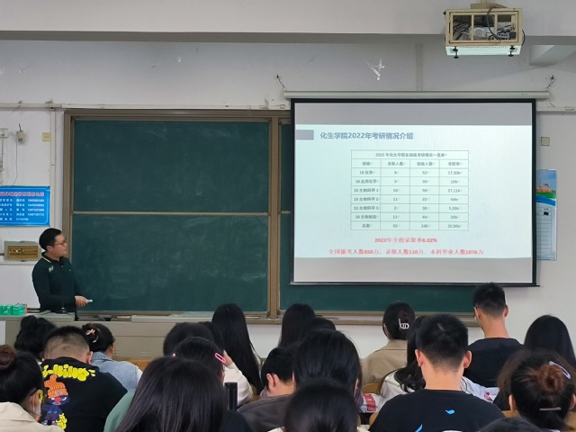 活动伊始,张宇介绍我院学子往年考研情况,考研率呈现上升趋势。考虑到当前社会岗位需求,他鼓舞同学们积极备战考研。随后,他就我院历年考研人数及其通过率展示了详细的数据,并对同学们寄予厚望,希望各位考研同学能够脚踏实地,注重基础,耐得住寂寞。为帮助同学们进一步掌握考研技巧,张宇还介绍了我校“助研工程”的相关政策,提倡大家积极参与,打好坚实基础。