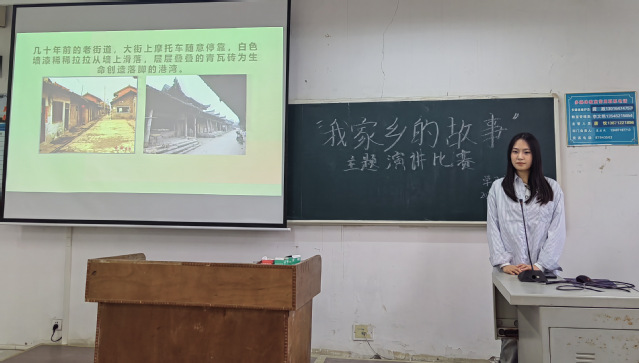 比赛期间同学们围绕主题在五分钟之内完成PPT演讲,大家在讲台上以高涨的热情将各自家乡的故事讲得绘声绘色,通过对比家乡近年来的经济发展变化以及环境变化,让观众领略到了不同地域的独特之美。每组选手演讲结束,评委老师都会根据对选手们的表现给予各级别评价,大家也都虚心学习和改正。