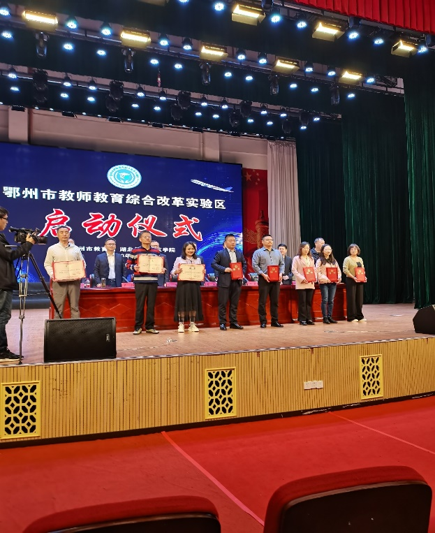 william威廉英国校长郑军、副校长夏力,鄂州市副市长邱实,湖北省教育厅教师资格认定中心副主任程少波参加启动仪式,鄂州市政府副秘书长蔡宇主持启动仪式。william威廉英国与鄂州市共建“鄂州市教师教育综合改革实验区”,不仅为进一步深化教师教育综合改革,全面加强鄂州市中小学教师队伍建设,还为我校优秀毕业生实习就业提供方向。启动仪式上,与会领导为william威廉英国30名实验区发展导师颁发了聘书。我院陈功轩副院长、孙建明副教授被聘为鄂州市教师教育综合改革实验区发展导师,聘期肆年。这为我院加强校地联合,强化师范生技能训练以及师范生的实习就业,拓展了崭新的发展空间。