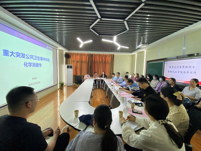 会上,李院士进行了关于“重大突发公共事件中的化学测量学”为主题的学术报告。介绍了课题组基于免疫层析检测技术及酶标抗体抗原方法,致力于开发能快速检测这些典型病毒碱基或核酸的新的靶标技术和方法,并积极研究病原体治病机制,取得了突破性成果,报告结束后,教师们与李院士进行了积极地互动交流。