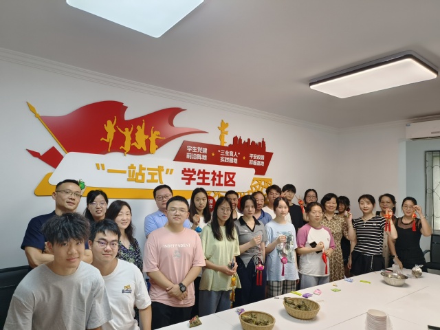 活动现场,老师们精心准备了端午佳节必吃的粽子和佩戴的香包,为留校的学子带来端午的祝福。各班学生代表在现场畅所欲言,从期末复习、分班情况、未来发展等方面与院长曾国平以及各位老师交流谈心。老师对学生们的反馈都积极回应,着重关心学生学习和生活情况,为学生答疑解惑。随后,各位老师和各班学生代表在“一站式”学生社区进行合影留念,同时,宣布本院“一站式”学生社区正式启动。