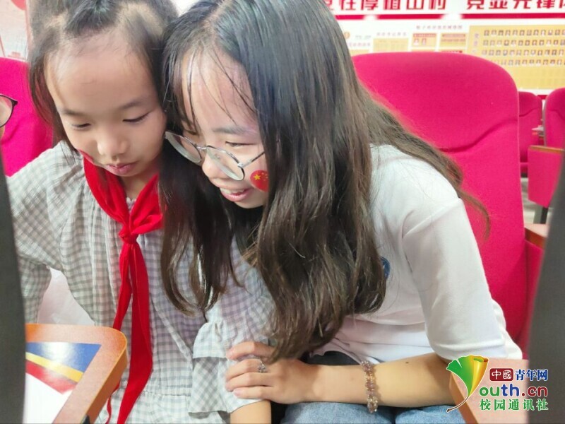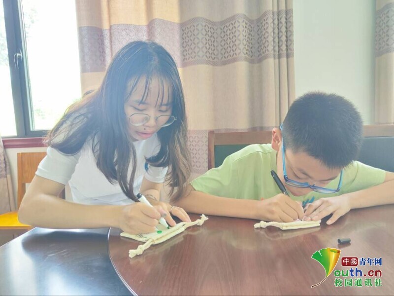 图为志愿者和孩子一起给香囊设计外观。 中国青年网通讯员 邓媛媛 供图
