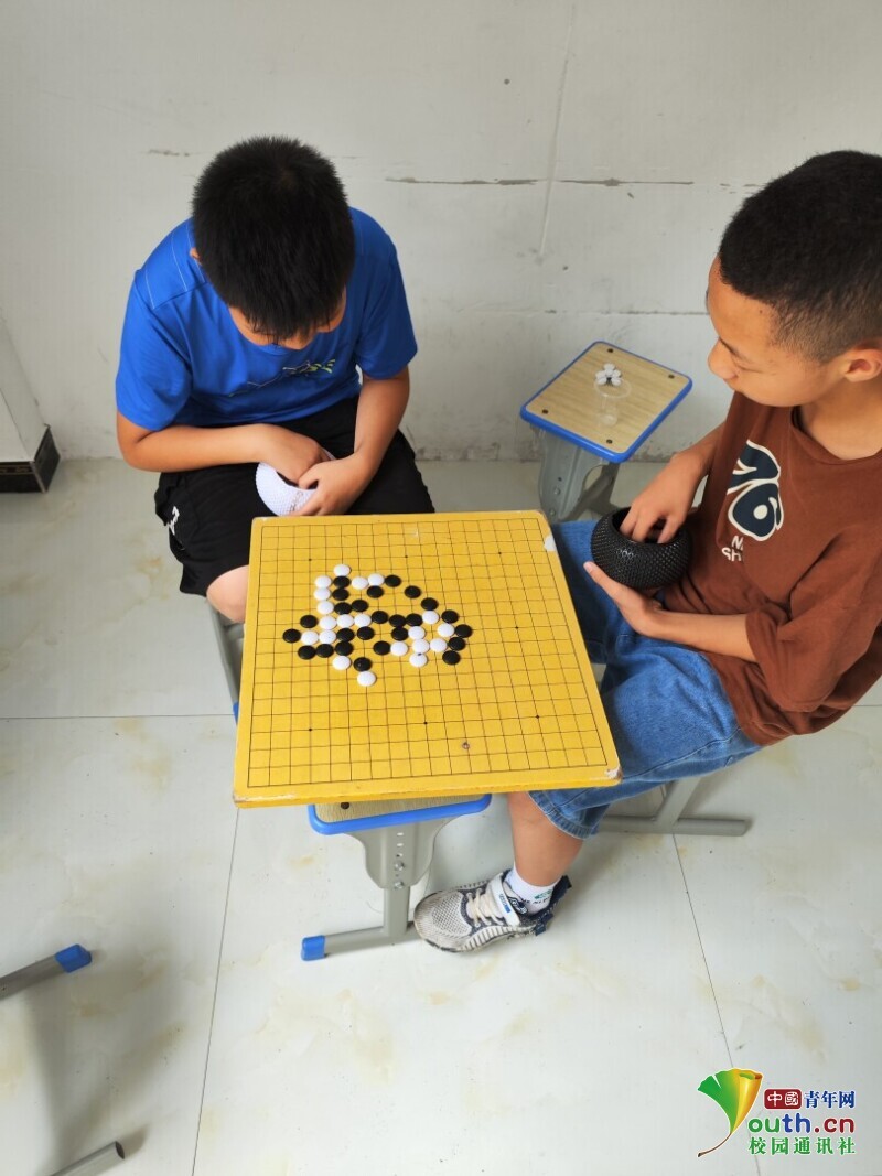 图为孩子们课间围棋对弈放松。中国青年网通讯员 李志坤 摄