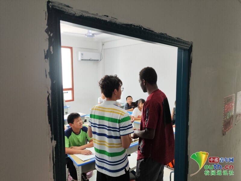图为志愿者与外教对接。中国青年网通讯员 李志坤 摄