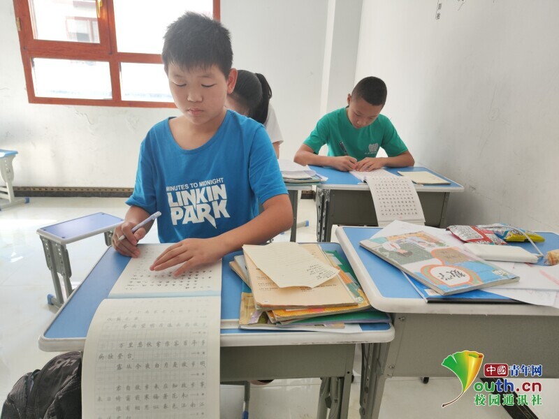 图为孩子们端正练字。中国青年网通讯员 李志坤 摄