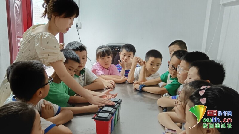 图为志愿者与学生进行垃圾分类游戏。中国青年网通讯员 张安琪 摄