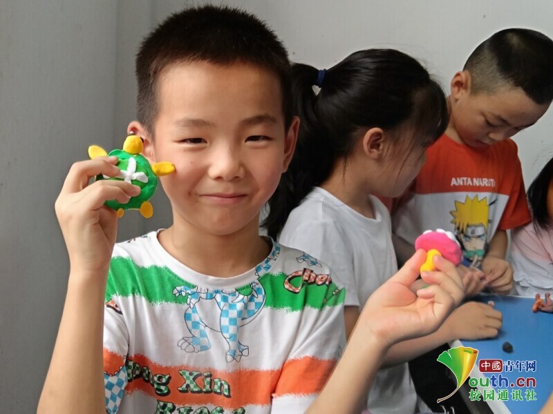 图为学生展示粘土作品。中国青年网通讯员 张安琪 摄