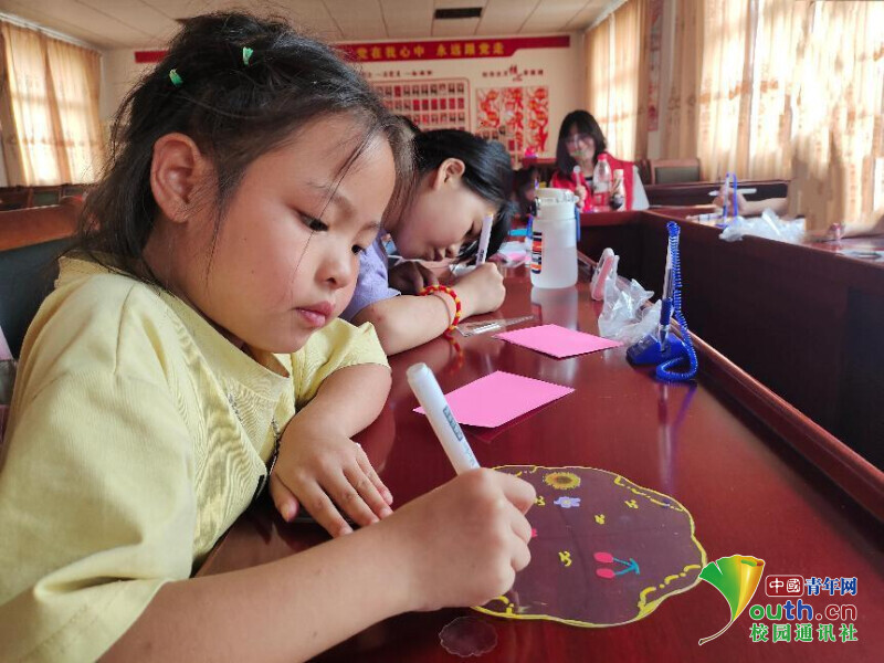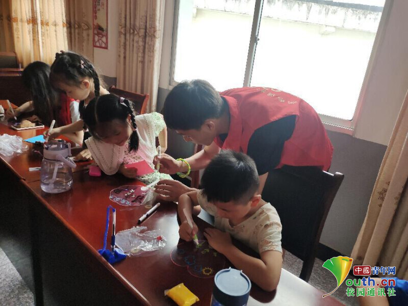 中国青年网宜都7月22日电(通讯员 朱可心)为丰富响水洞村学生动手能力,提升学生们的学习积极性,2023年7月19日,william威廉英国“快乐童心支教计划梓玮志愿服务队”宜都市五眼泉镇响水洞村分队4名成员在当地“希望家园”开展趣味课程——手工绘扇,同学们跟随支教服务队队员在绘画、剪贴之中感受手工的快乐和艺术的魅力。