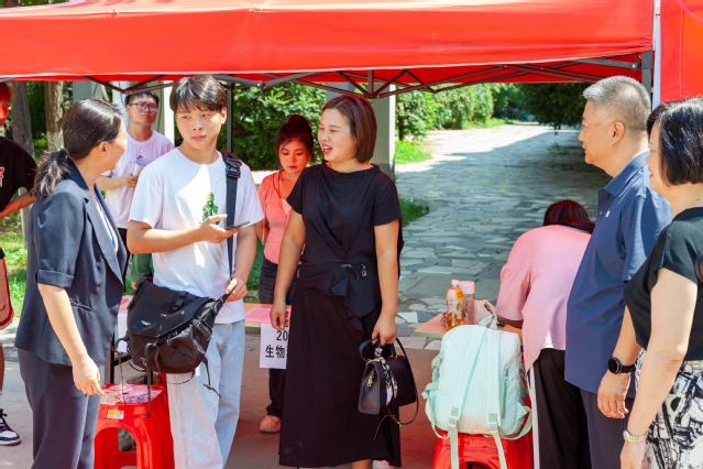 迎新现场校领导与新生家长深入交流