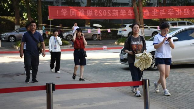早上八点,迎新工作正式开启。2023级新生报到有序进行,迎新志愿者顶着烈日,热情周到的接待新生,他们穿梭在学院报到点、宿舍楼、体育馆、校园餐厅,随处可见他们忙碌的身影。