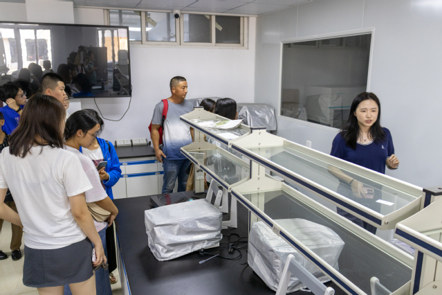 随后各位新生及家长跟随实验室主任黄丽霞老师、系主任张明星、王亮节老师,移步到实验中心进行参观。通过参观及学院领导老师们的介绍,新生与家长进一步了解到本院实验环境和专业设备配置,让新生们对未来的实验课程都充满了憧憬。