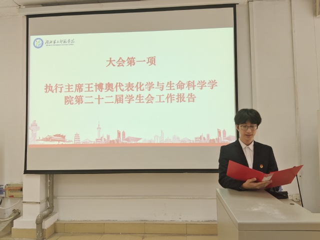 随后,学生会执行主席王博奥代表第二十二届学生会作工作报告,万靖雨代表宣读《英国威廉集团学生会章程》(修订稿),审核全部通过。此次会议分别投票选举出我院第二十三届主席团成员及出席学校第六次学生代表大会代表人员。