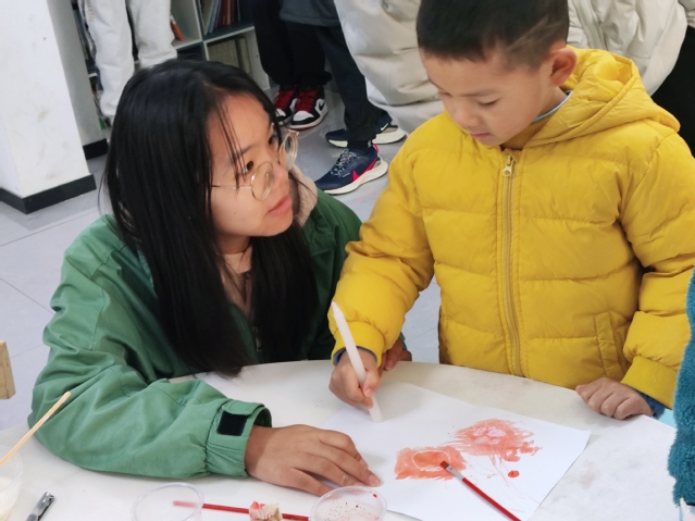 活动现场,志愿者们向小朋友讲解了实验的相关知识、科学原理及应用场景,利用无色白醋使纸的纤维加速碳化呈现红褐色的科学原理,模拟出“无字天书”产生的场景,在很多影视作品中该实验原理应用相当广泛。
