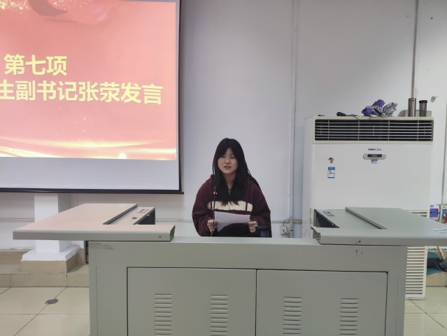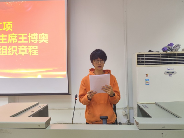 会上,分团委学生副书记蒋怡菲以《聚焦“一二三四” 提升“三力一度” 多措并举构建共青团工作新格局》为主题全面总结2022年我院共青团工作并指出未来发展方向。学生会执行主席王博奥宣读团学组织章程,各部门负责人宣布本学年加入团学组织的新成员名单。