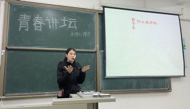 在讲座中,谭芬从手性的重要性、手性与人类健康等方面向同学们介绍了有关手性和手性药物的生物化学知识,让同学们了解手性,重视手性,认识到手性分子在化学与环境保护和人类发展过程中的重要作用。“人体中的许多物质如氨基酸、蛋白质、DNA等都是手性物质,它与人类健康密切相关,手性药物的研究也为人类将康带来了一些重要保障。此外,手性技术与手性产品符合绿色化学原则,为改善生存环境、创造美好生活带来可靠动力。”谭芬讲解到。