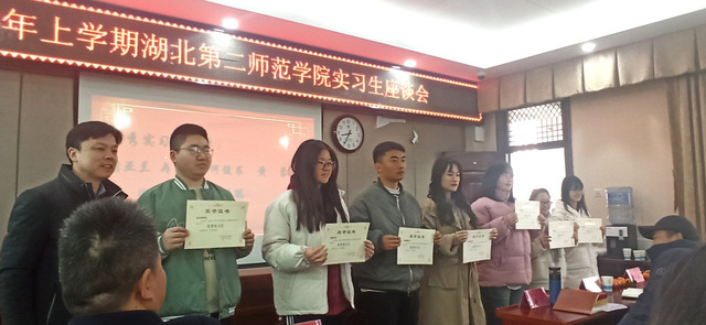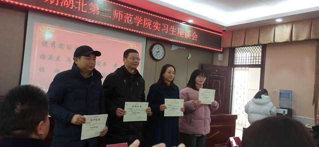 会议伊始,光谷第三初级中学校领导为优秀实习生颁奖。这些实习生的实习期间表现优异、工作踏实、认真负责。随着一个个名字的宣布,实习生们走上讲台,接过荣誉证书。这一刻,是他们辛勤努力的见证,也是对他们未来的鼓舞与期待。