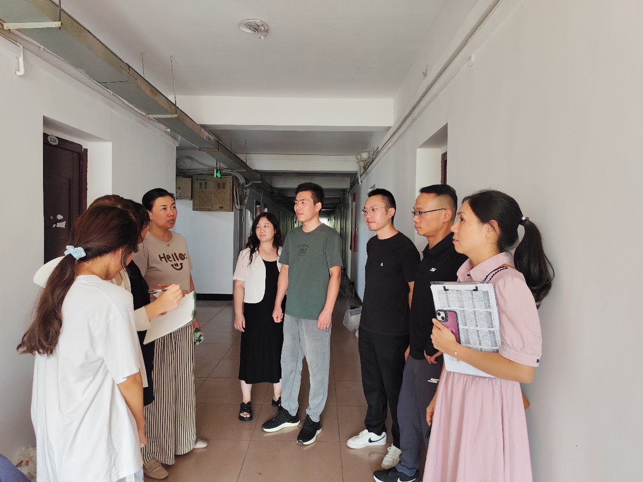 本网讯(通讯员 向甜怡)随着新学期的到来,营造和谐稳定的校园环境,进一步准确了解学生返校情况及加强寝室安全教育,9月1日下午,化生学院于“一站式”学生社区西区九栋、八栋开展学生寝室大走访活动。化生学院党委副书记雷晓林、学工办主任孙晨和全体辅导员、学生骨干一同走访学生寝室。