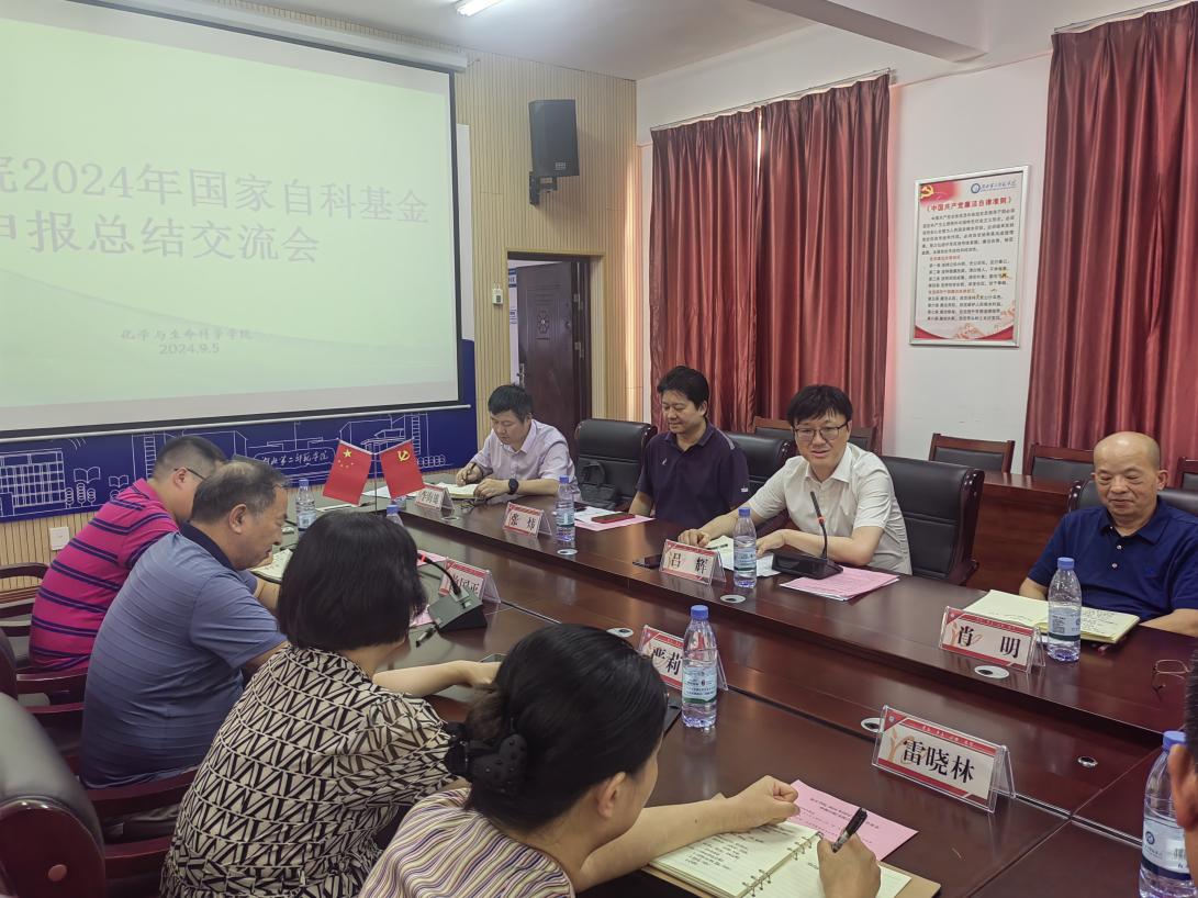 (通讯员:张强)为部署2025年度国家自然科学基金申报工作,进一步提升我院国家自然科学基金申报质量,9月6日下午,副校长吕辉带队科研处和学科办前往化生学院召开2024年国家自然科学基金申报总结会。化生学院全体班子成员及国家自科项目的申报教师参加了此次会议,会议由化生学院院长曾国平主持。