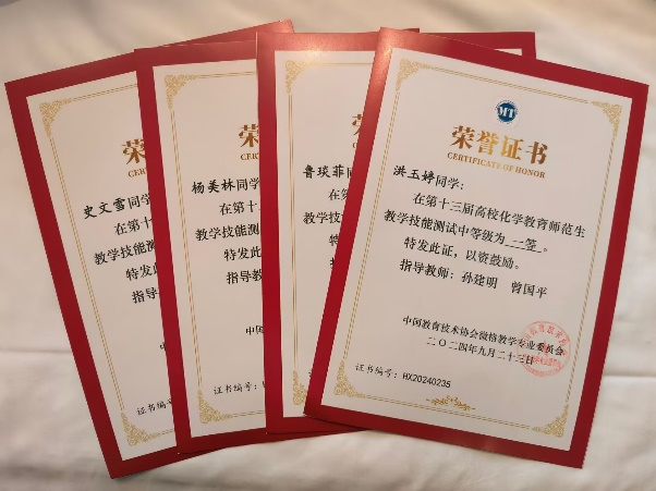 本网讯(通讯员鲁琰菲)9月23日,第十三届全国师范院校化学师范生教学能力测试与交流展示活动圆满落幕。我院学子们在此次大赛中表现卓越,荣获一等奖3项、二等奖1项。