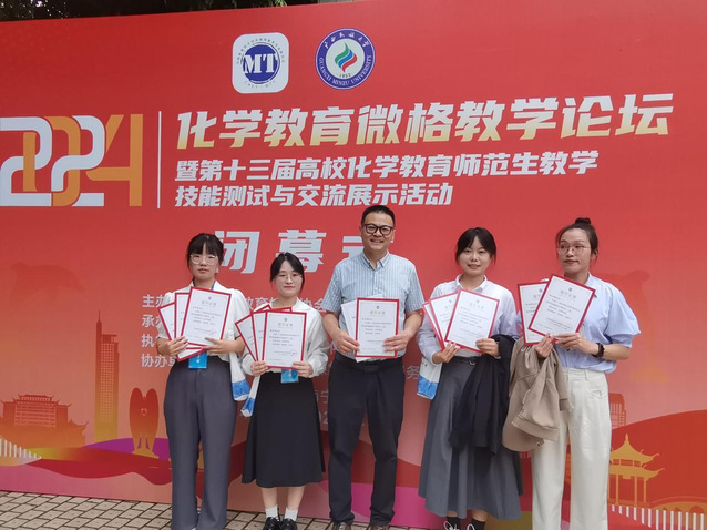 我院化学专业负责人孙建明副教授作为主要指导老师,不仅指导学生取得优异成绩,还受邀在大会上进行了题为《优化化学教学技能:从理论到实践的创新路径--师范生教学技能竞赛经验分享》学术报告,并作为嘉宾受邀参加两场学术沙龙,对两个展示教学案例进行了深入分析和精彩点评,给出了建设性的修改指导建议,赢得了与会专家和师生的高度认可。